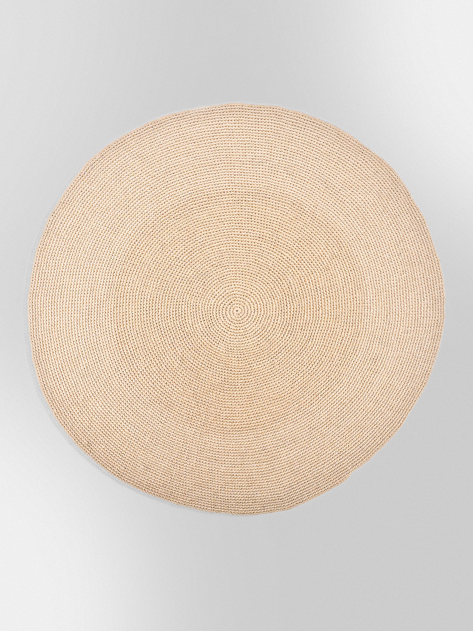 Esta alfombra redonda en Fique con técnica de crochet, ofrece una textura apretada que reduce la acumulación de polvo. Es de bajo mantenimiento, fácil de limpiar y resistente a la absorción de líquidos en comparación con otras fibras. Los bordes trenzados previenen el deshilachado, garantizando durabilidad.