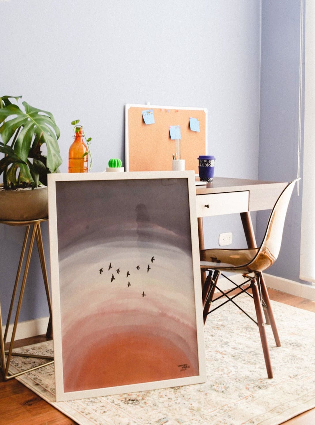 Utilizando técnicas de ilustración digital e inspirado en el atardecer de las playas del Caribe, este atardecer de 7 colores llegara a casa a traer paz y tranquilidad.