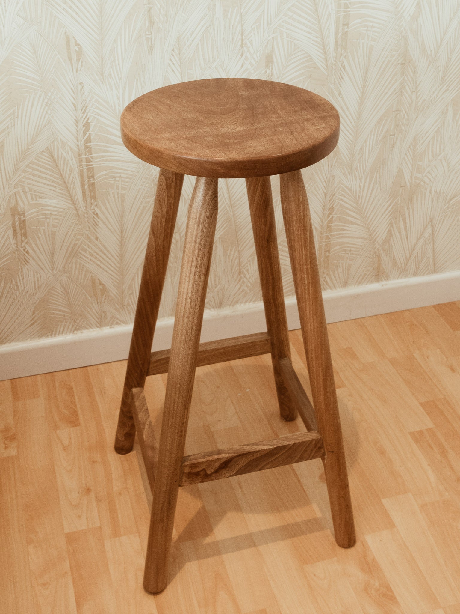 Agrega un toque escandinavo a casa con este taburete de Roble de lineas perfectas; cuenta con un asiento circular rematado con patas en listones redondos.