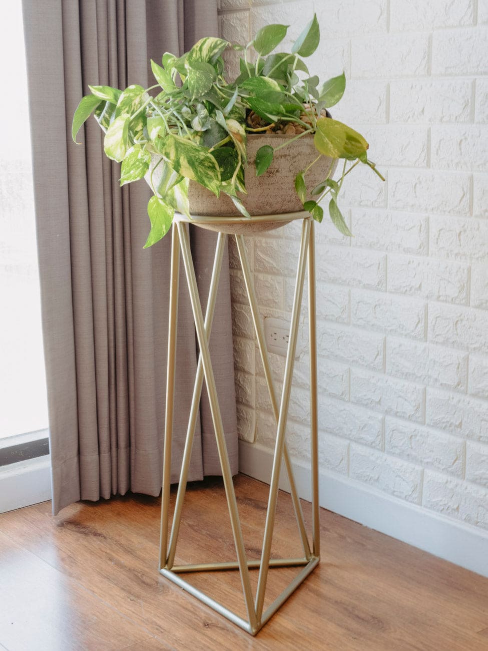 Jardinera elaborada en hierro, soldada a mano con pintura en polvo y baño antioxidante; la acompaña una maceta de cemento impermeable hecha por manos artesanas colombianas.