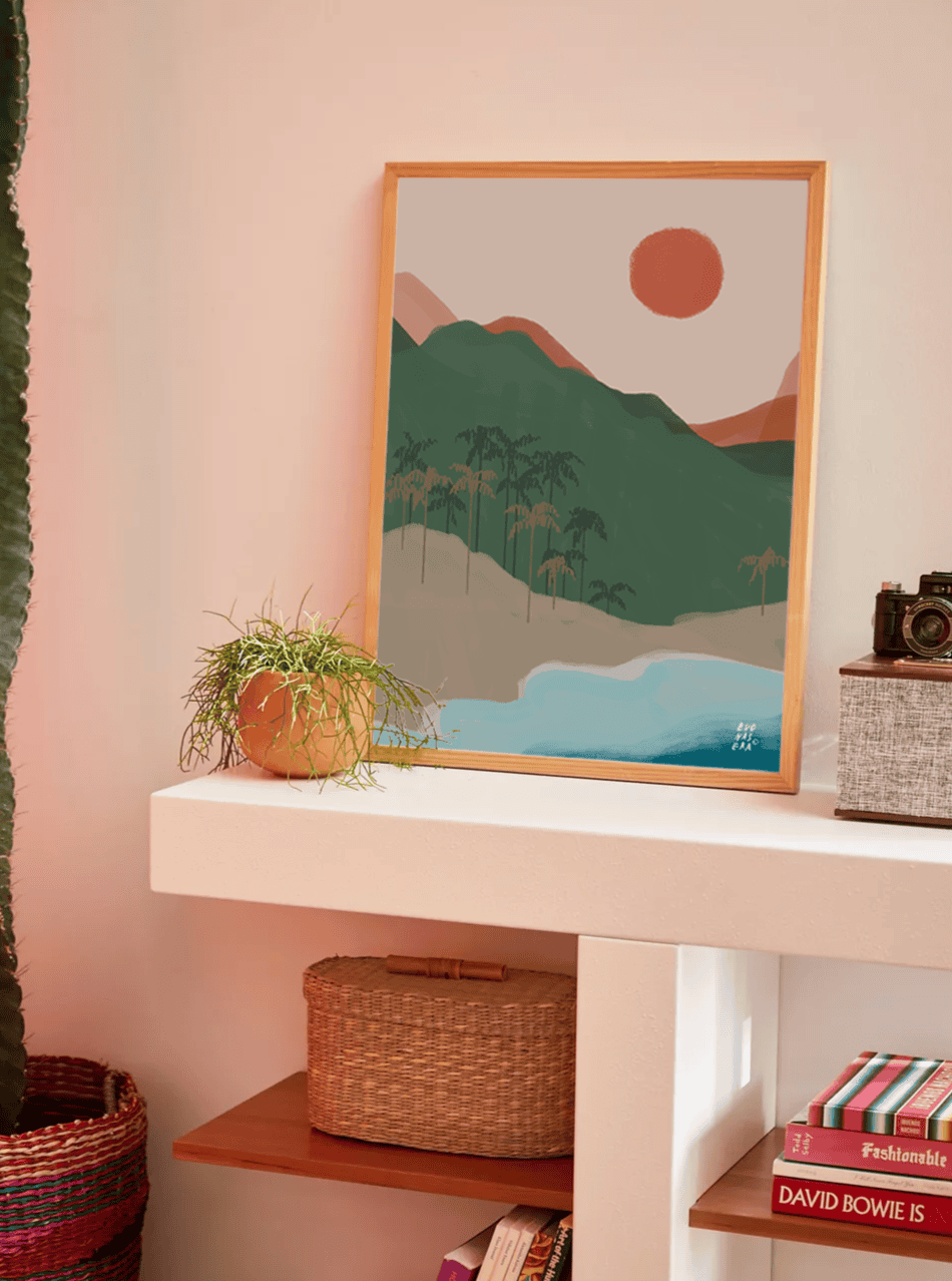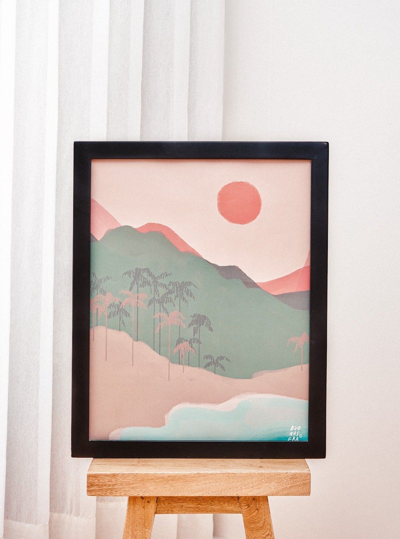 Este arte te transportará a las playas sobrenaturales de nuestro Tayrona, haciéndote sentir más cerca que nunca de la naturaleza de nuestro país y sus paisajes únicos. Pintado a mano con ilustraciones digitales, instala esta nueva obra junto a un mosaico o también colócala individualmente en la pared donde desees agregar vida.