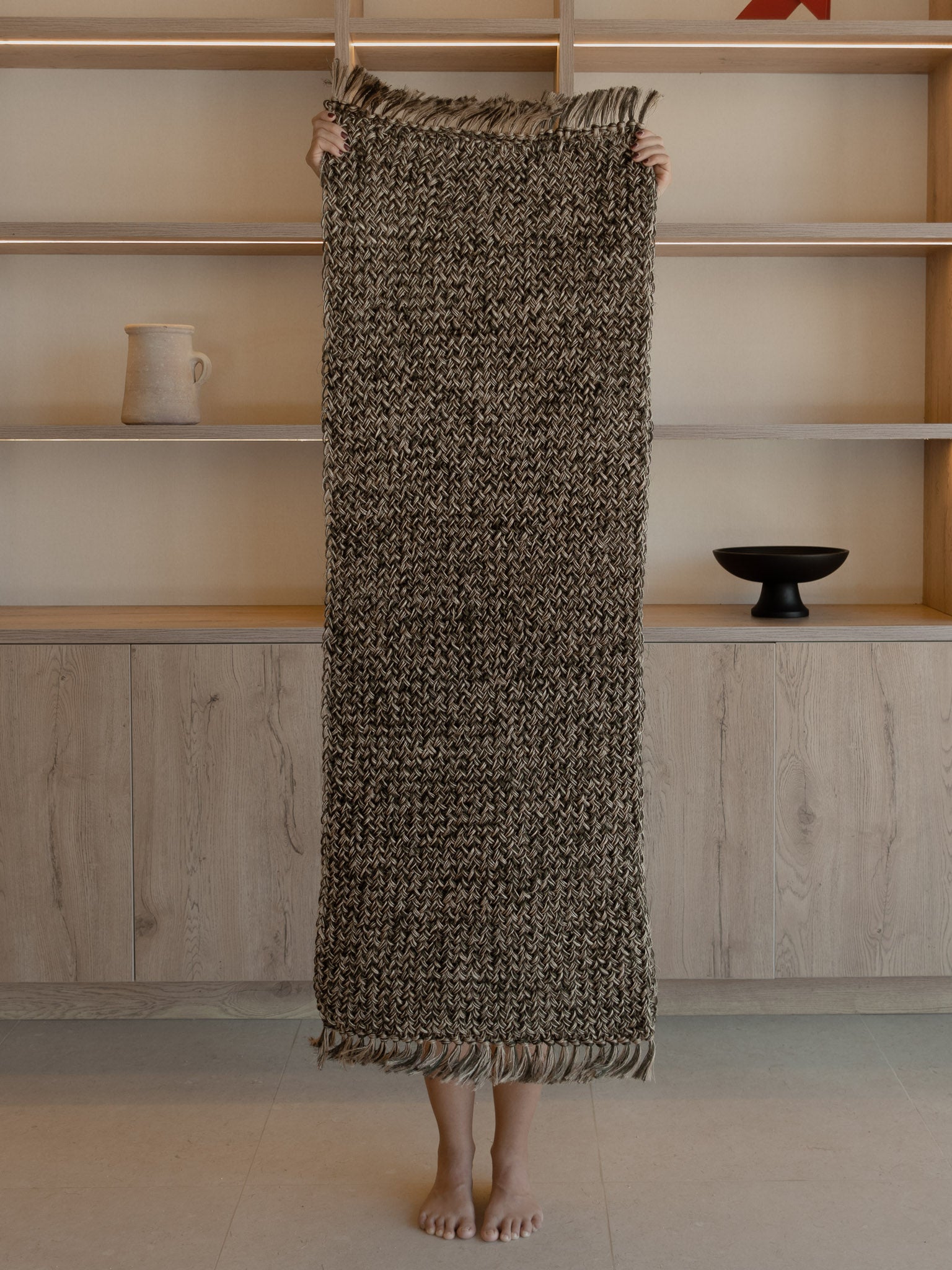 Hecha a mano a partir de la palma de fique, este material tradicional colombiano es de bajo mantenimiento, duradero e ideal para todas las estaciones. Su tejido denso y compacto, elaborado con 10 hebras de material, permite que acumule menos polvo que otras fibras y no absorba líquidos como el algodón o la lana, lo que facilita su limpieza. Los bordes están rematados con un acabado trenzado que previene el deshilado y garantiza su durabilidad.
