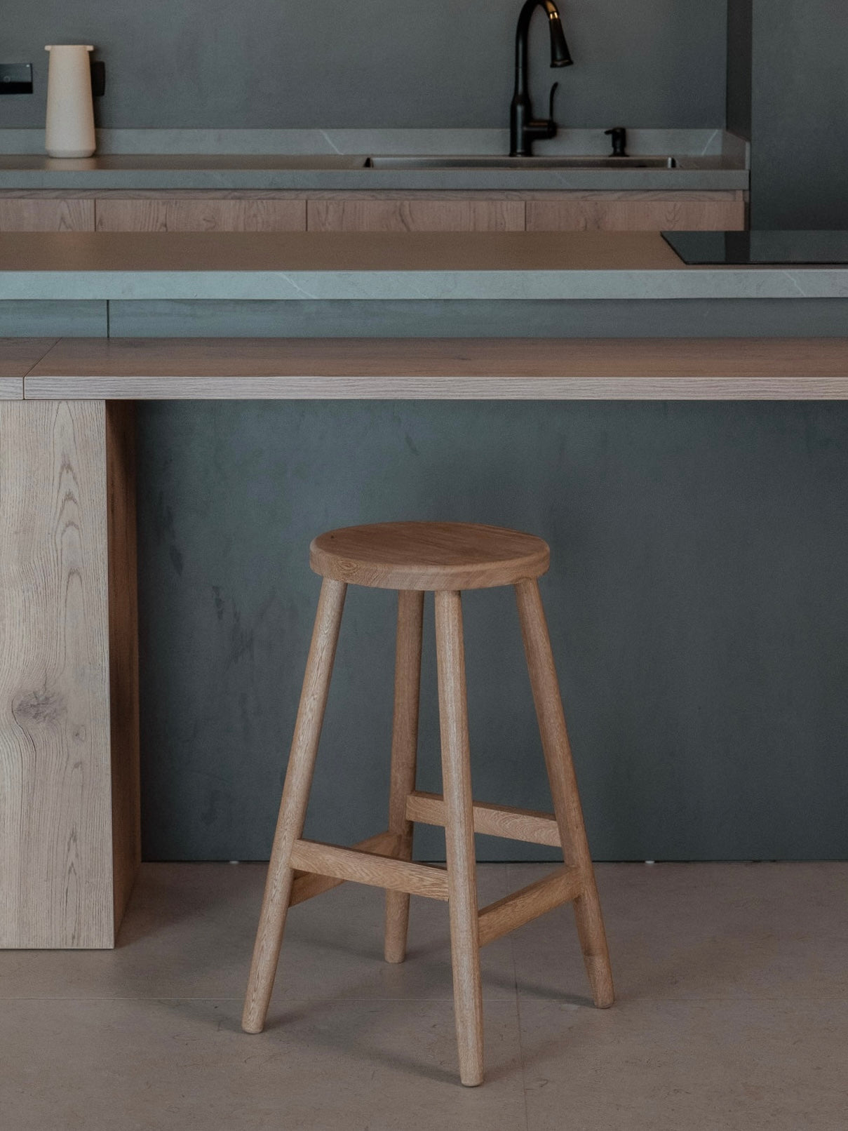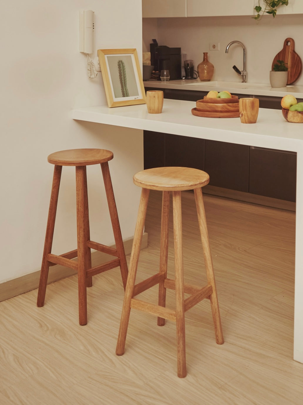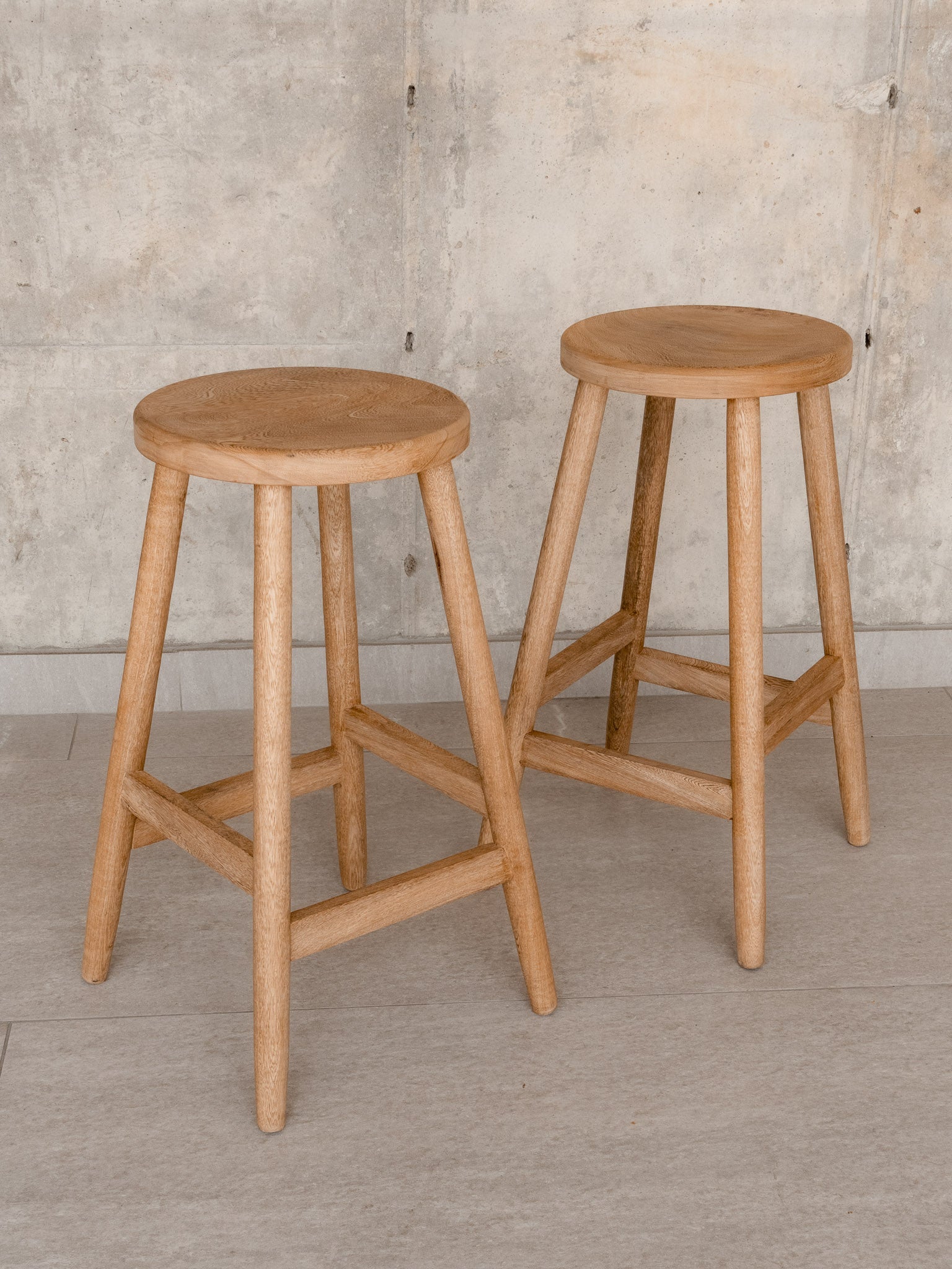 Agrega un toque escandinavo a casa con este taburete de Roble de lineas perfectas; cuenta con un asiento circular rematado con patas en listones redondos.