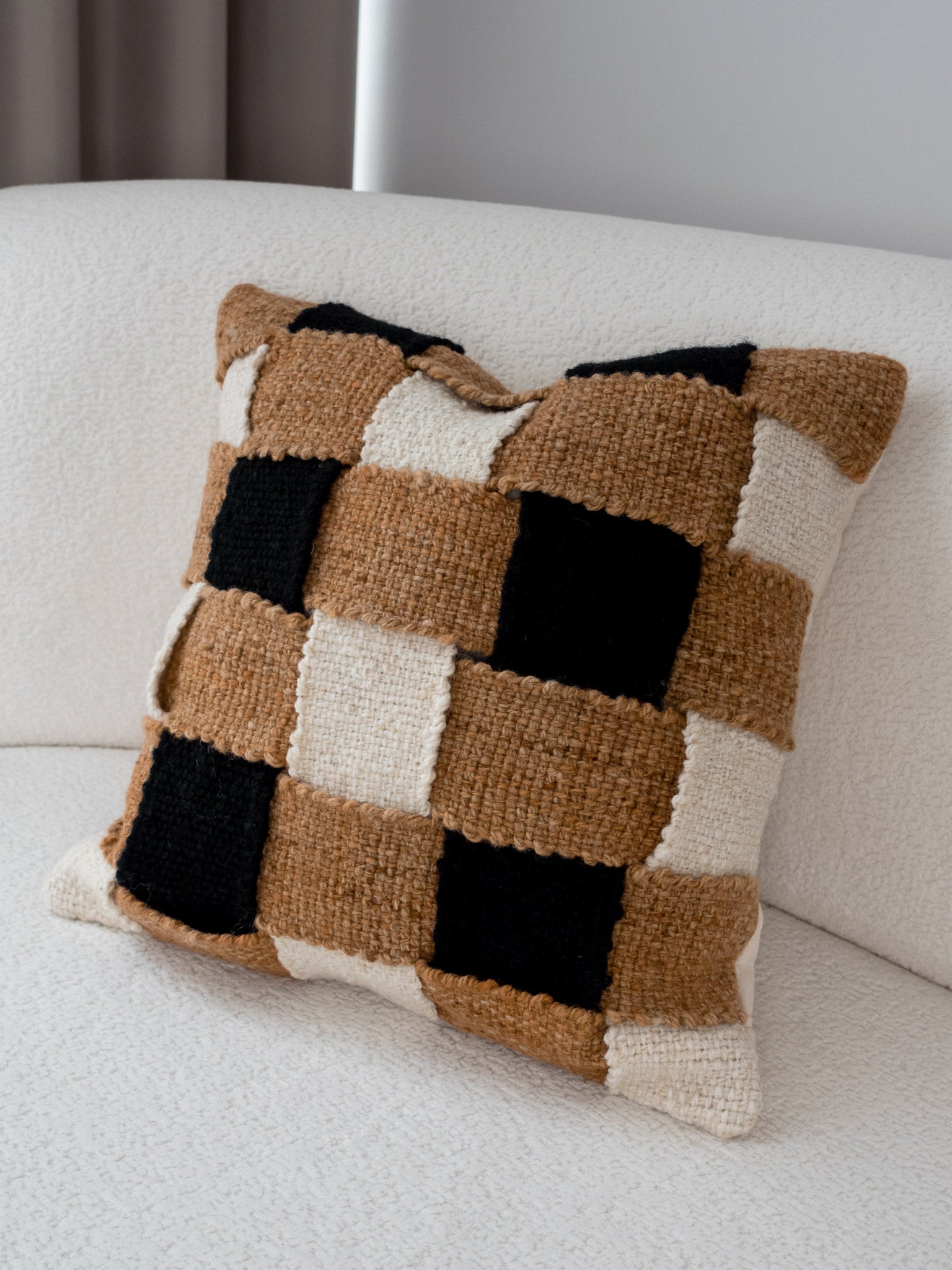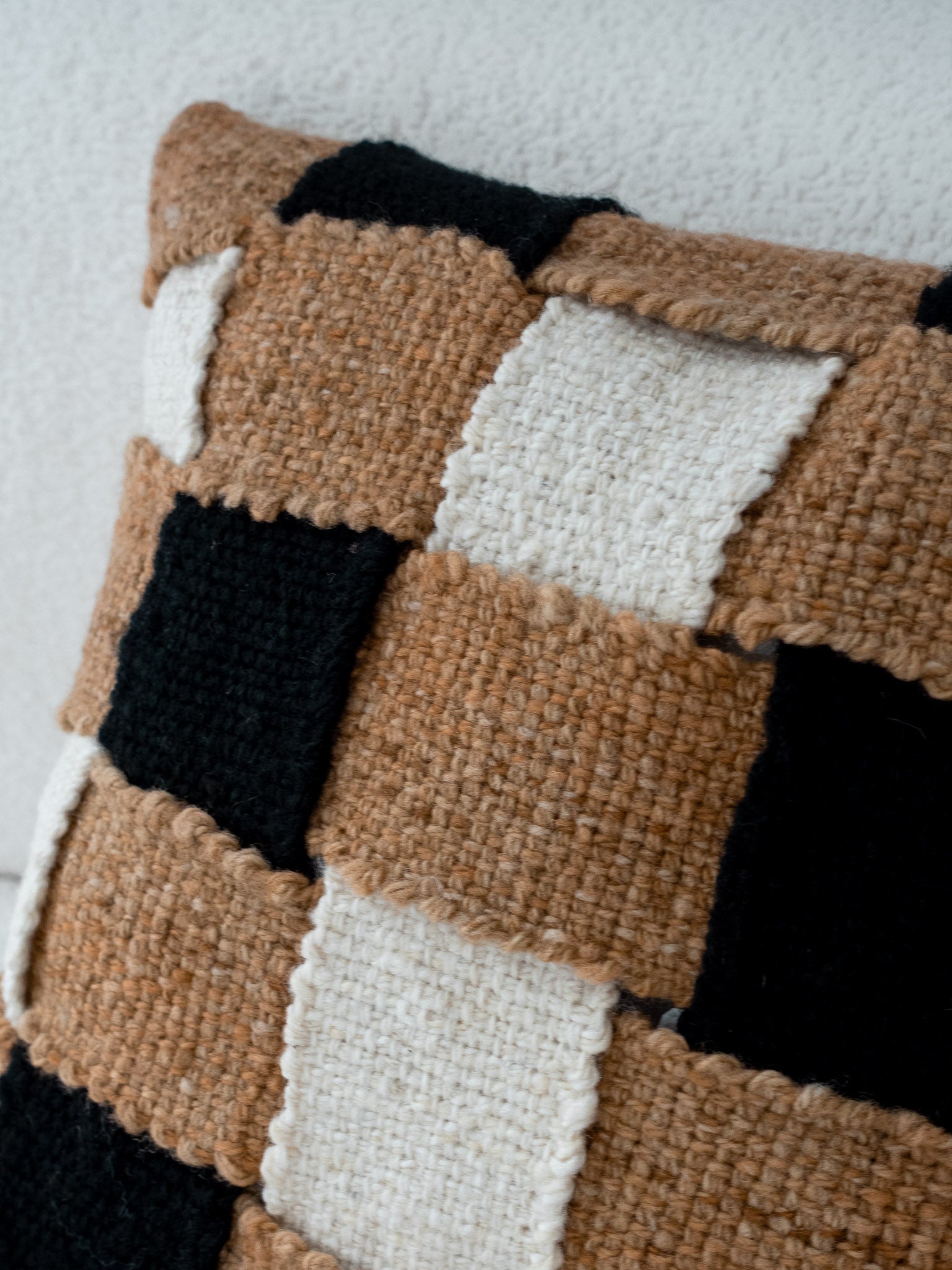 Confeccionados en telar artesanal con Lana, estos cojines destacan por su diseño auténtico que fusiona tradición y elegancia. Sus patrones de cuadros en tendencia y su acabado exquisito aportan carácter a tu hogar.