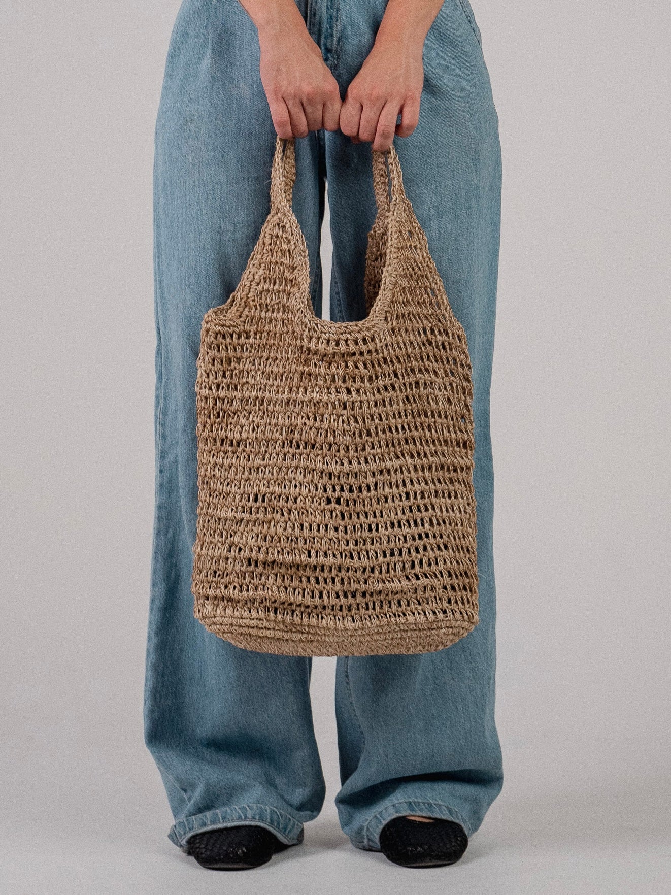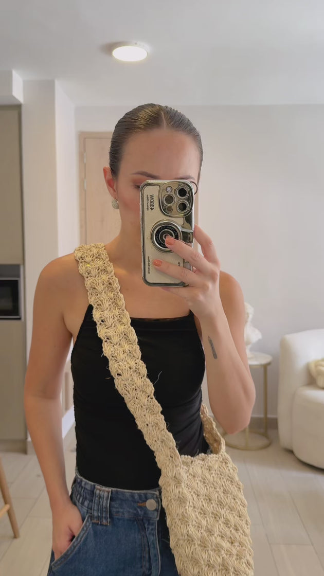 Esta mochila de diseño neutro combina los tonos arena y blanco hueso, dos colores estrella que la hacen perfecta para cualquier ocasión. Su amplio espacio interior te acompaña en el día a día, ofreciendo practicidad sin perder estilo. El trenzado en el borde y su cuerda delgada le dan un sello único dentro de nuestras referencias, resaltando la belleza y resistencia del fique en cada detalle.