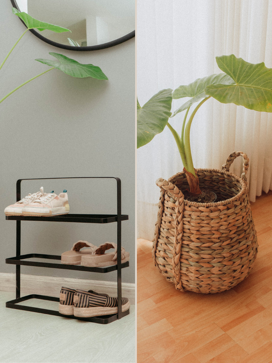 Organiza y decora con elegancia: Este zapatero original de Buonasera, fabricado en hierro con un acabado en pintura en polvo antióxido, mantiene tus zapatos impecables y ordenados, evitando que se ensucien entre sí. Complementa tu hogar con la Tinaja Jane, una pieza artesanal con estructura de hierro y asas resistentes, perfecta para clasificar tus objetos mientras realzas el ambiente con su hermoso trenzado hecho a mano.