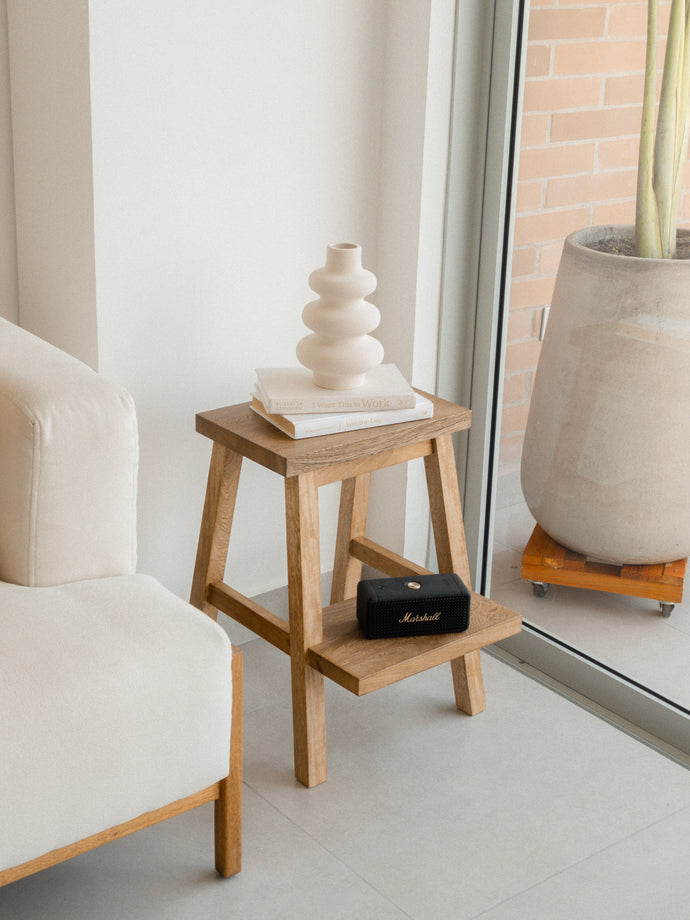 Fabricado a mano en madera de roble, este butaco no es solo un mueble, es una solución versátil para tu hogar. Úsalo como silla, mesa auxiliar, soporte para plantas, banco escalador o incluso para crear un rincón decorativo único. Su diseño minimalista y sus excelentes acabados lo convierten en una pieza atemporal.