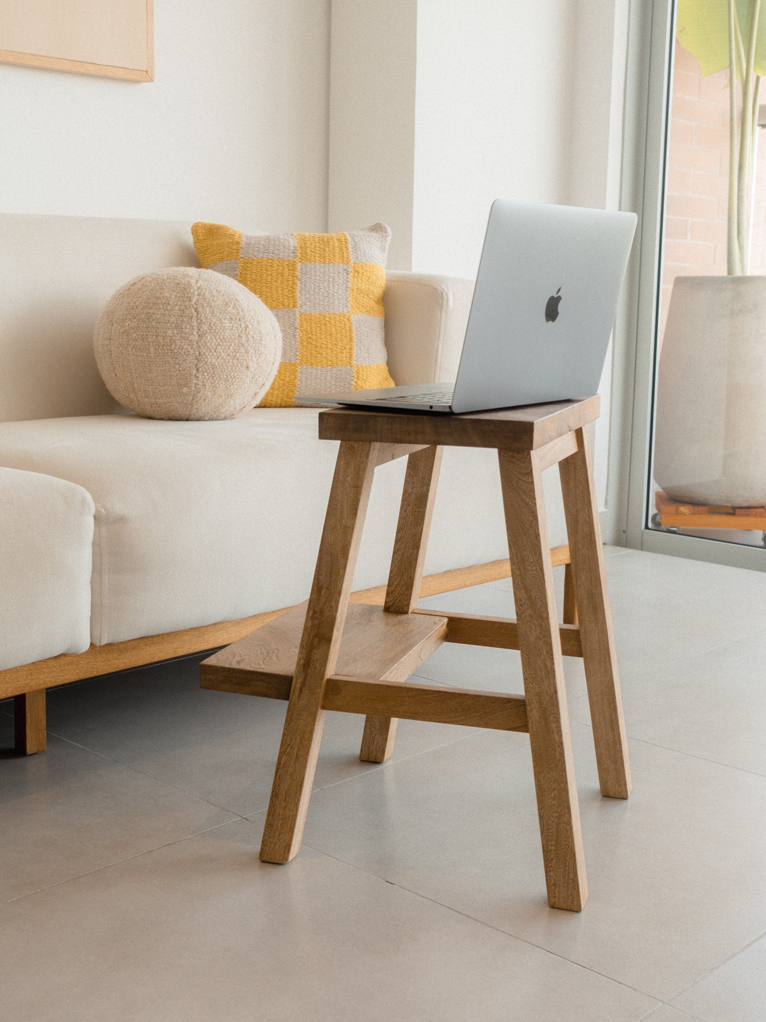 Fabricado a mano en madera de roble, este butaco no es solo un mueble, es una solución versátil para tu hogar. Úsalo como silla, mesa auxiliar, soporte para plantas, banco escalador o incluso para crear un rincón decorativo único.